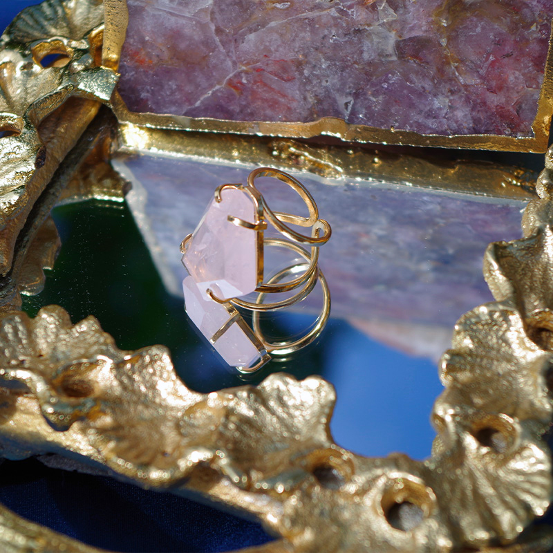 Bague Arc Cristal de quartz Rose naturel (Brésil)