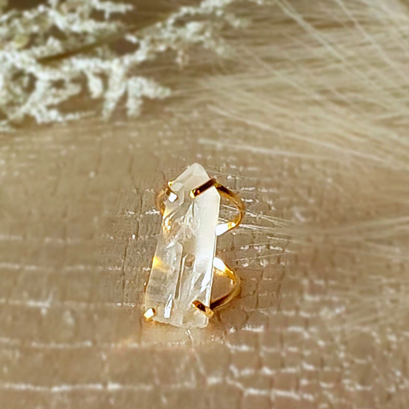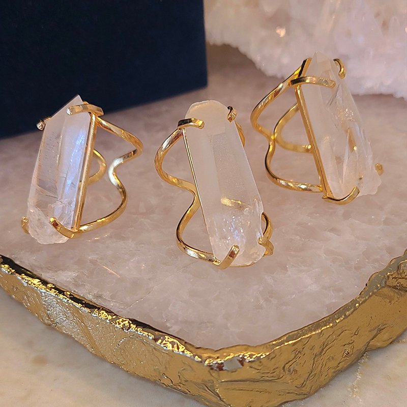 Alliage de cuivre plaqué 18k sans nickel. Chaque pièce est unique et ajustable, cristaux 100% naturel.