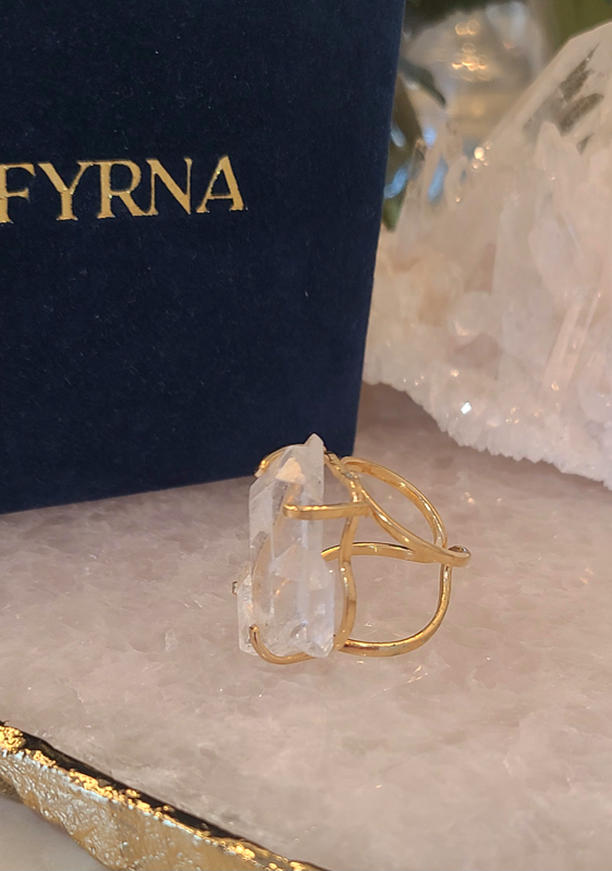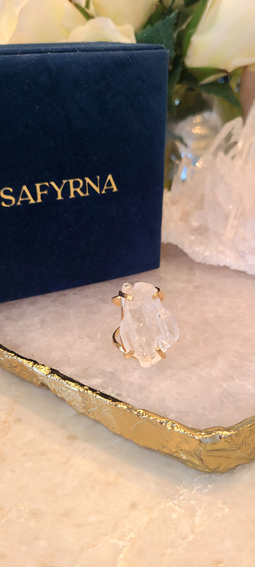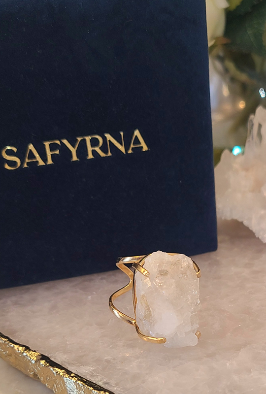 Bague coffre de cristal de quartz clair naturel (brésil)
