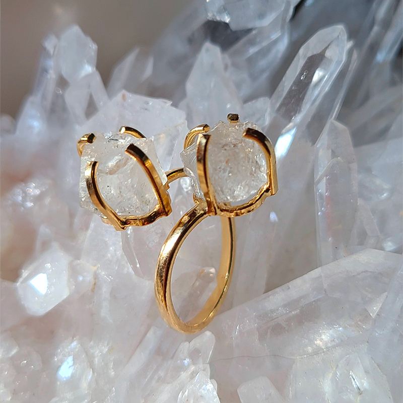 Alliage de cuivre Plaqué 18k sans nickel. Chaque pièce est unique et ajustable 100% de cristaux naturels.
